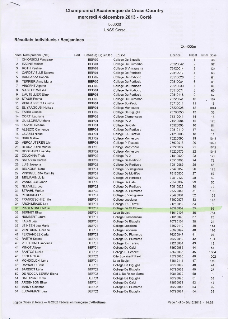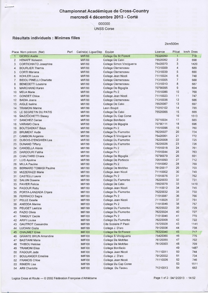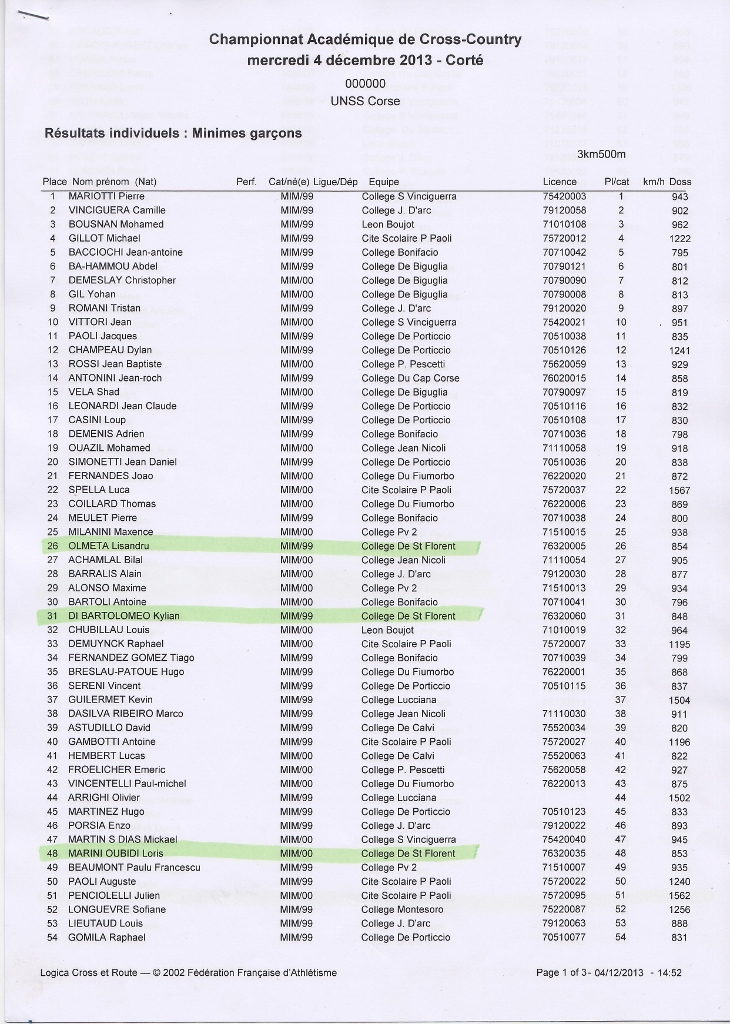 Cross de Corte le mercredi 4 décembre (rétrospective)